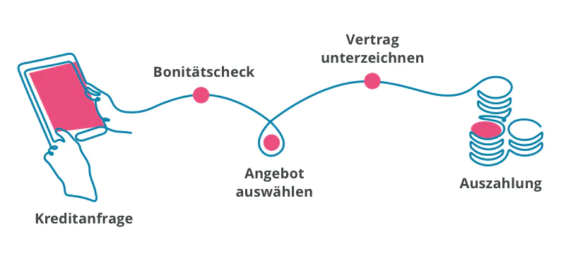 Sobald Du Deine Vertragsunterlagen an unsere Partnerbank weitergeleitet hast, erfolgt die Auszahlung innerhalb weniger Werktage.