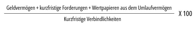 Die Berechnung vom zweiten Grad verdeutlicht, ob das Unternehmen grundsätzlich fähig ist, seine kurzfristigen Verbindlichkeiten zu begleichen.