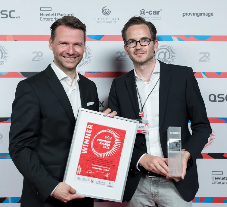 vor anderen im Netz verstecken!“, sagte Prof. Dr. Tobias Kollmann, Inhaber von netCAMPUS und Beauftragter für die Digitale Wirtschaft des Landes NRW. Er überreichte auf der Gala einen Sonderpreis an ein herausragendes Unternehmen, das durch seine Innovationskraft und Kreativität ein Vorbild für die gesamte Digitale Wirtschaft des Landes Nordrhein-Westfalen darstellt.