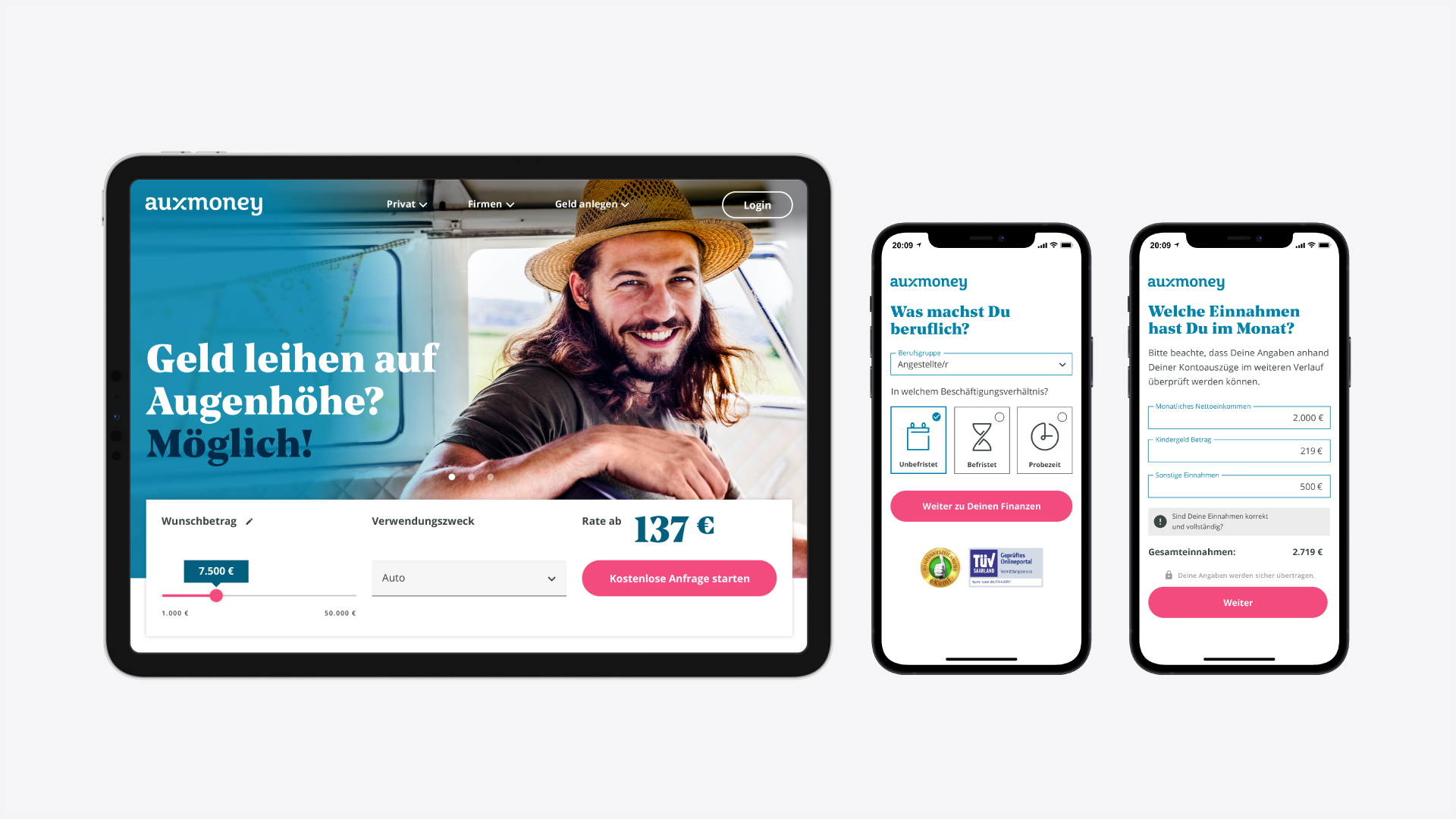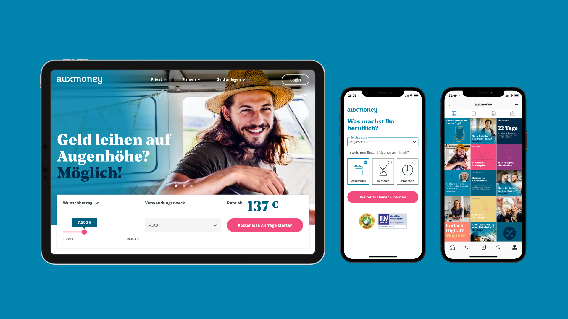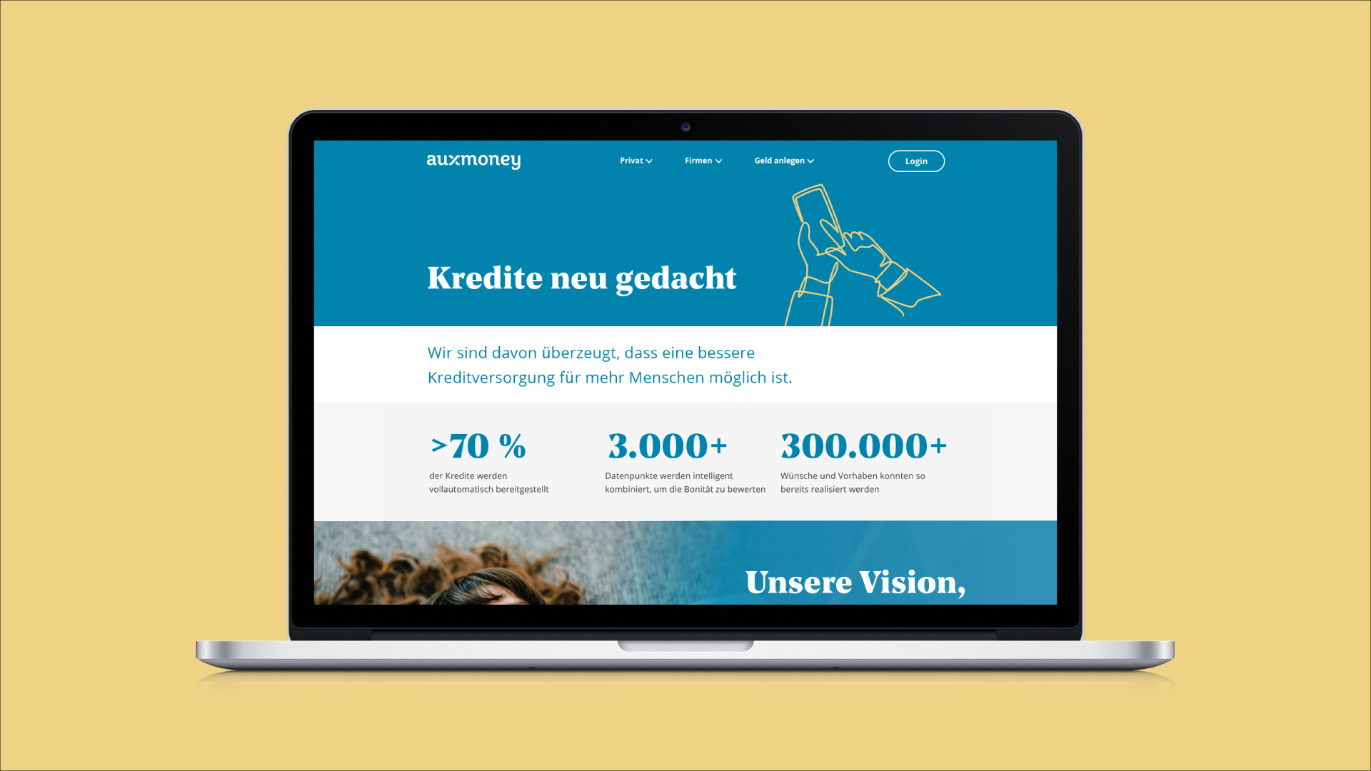 Bitte verwenden Sie bei jeder Veröffentlichung die Bildquelle „auxmoney“. Das Bildmaterial darf nur bearbeitet veröffentlicht werden, wenn dadurch weder die Bedeutung noch der ursprüngliche Inhalt des Fotos verändert wird.